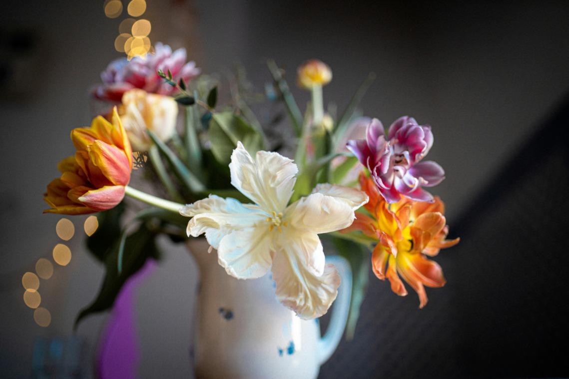 Tulipscanbehelpedtoremainuprightbyplacingacoppercoininthe wateratthebottomofthevase.(didyouknowthattheyareoneofthe fewflowersthatactuallycontinuegrowingoncecut?) Appletwigs, forsythiaandfloweringcurrentwillmakeacheerfulspringflower arrangementwhileabranchofwinter-sweet( withits strange,tasselledflowerswillperfumeawholeroom.