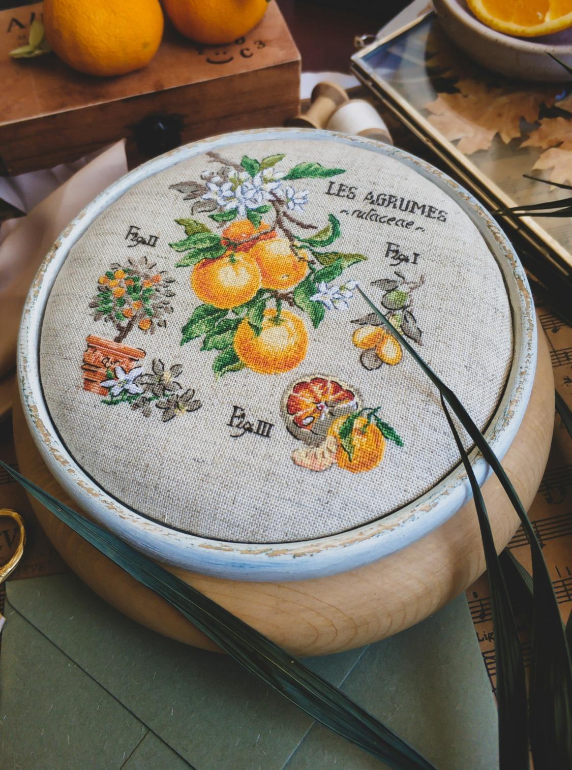 I chose to stitch my design on a pure linen fabric printed with small muted floral sprigs. I then selected floss colours that would work with the colours in these floral sprigs. I have given the floss colours I used below, but you may wish to change these to match your own fabric or simply to suit your own taste.