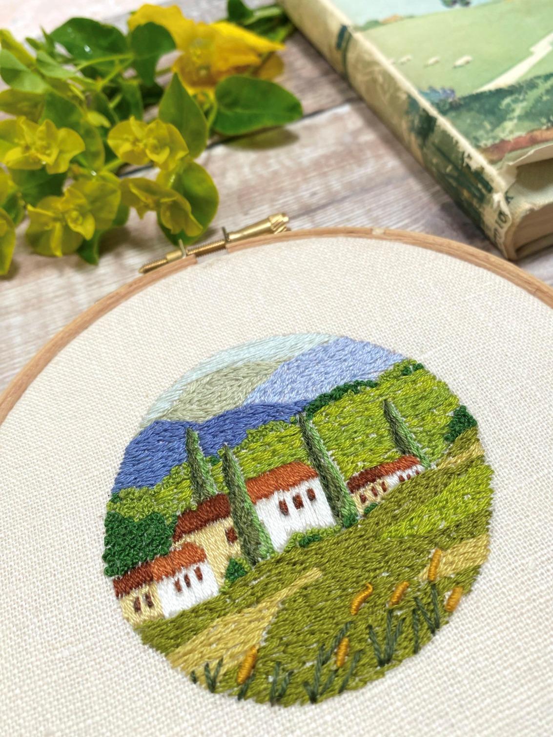 This month’s patterns reflect the summer mood - we have roses and a Tuscan landscape - reminding me of Italian holidays in days gone past. I hope you’ll enjoy the embellished book covers - I am definitely going to stitch more of these - and there’s also a chance to try your hand at using your printer to add a little extra to your embroidery.