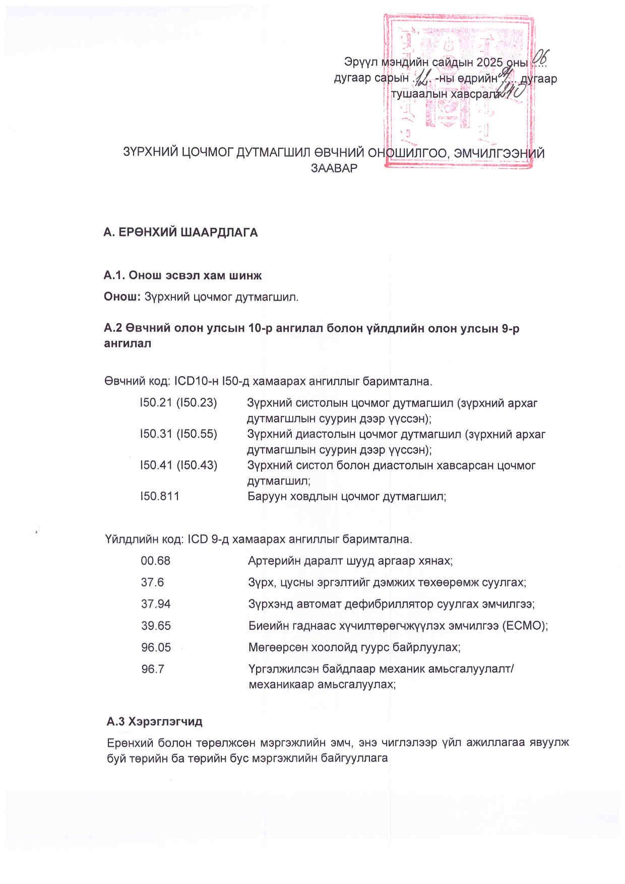Зүрхний цочмог дутмагшил эмнэлзүйн заавар 2025 он