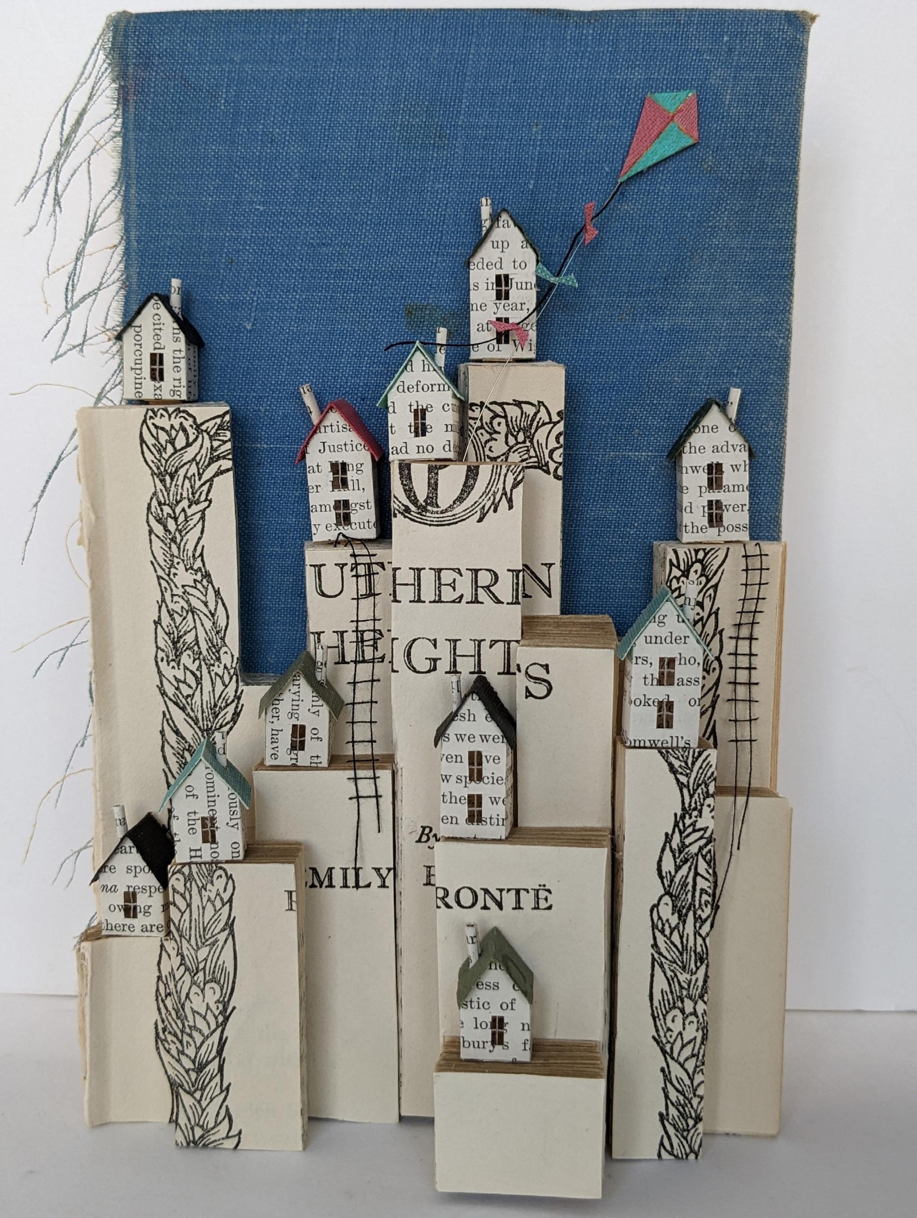 Betty Pepper makes her work from found materials; discarded books, old fabrics, forgotten papers. She breathes life and magic into these objects, creating fantastical, miniscule worlds populated with tiny animate houses and filled with their stories.