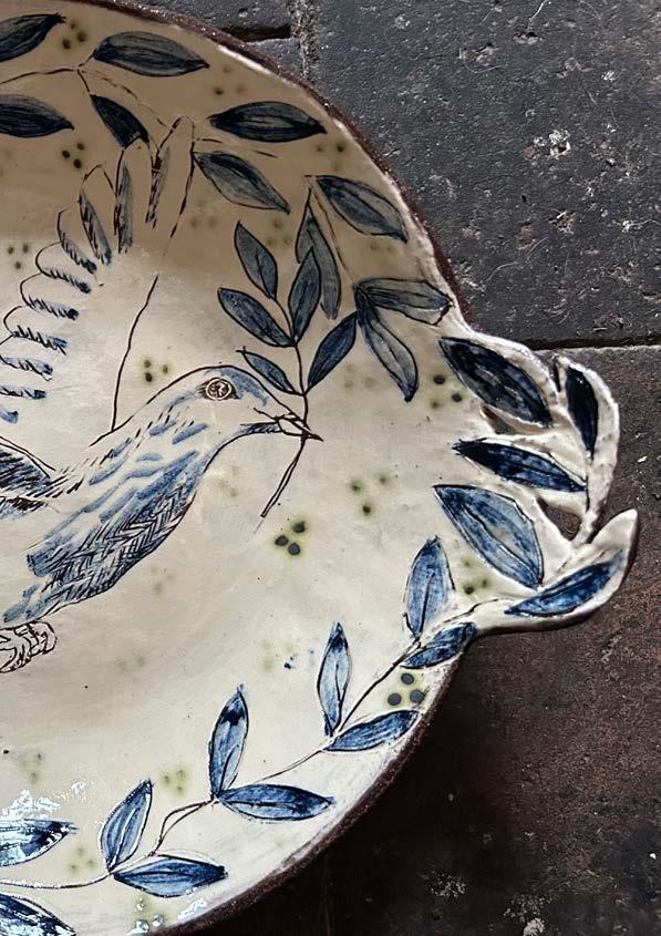 Large Bowl with Peace Dove and Leaf Handles Ceramic