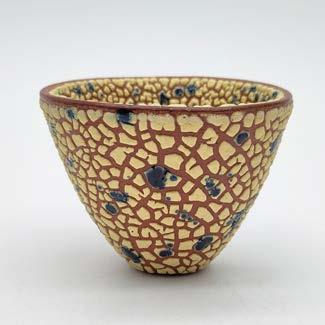 Red Clay, Deep Yellow Crawl Glaze & Inky Blue Glaze