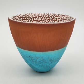 Red Clay, White Crawl Glaze & Turquoise Barium Glaze