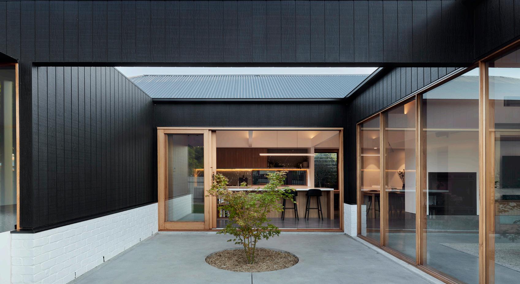 Black home exteriors are a trend that keeps gaining popularity. All black is a big statement, it creates sophistication and it’s unapologetically bold and fashionable. The architectural details pop and absorbs its surroundings, rather than deflects them, allowing the home to rest comfortably into its setting. However, remember to consider darker coloured paints draw attention to itself, whether positive or negative, they also have a lower Light Reflective Value (LRV) that may impact the thermal efficiency of the building.