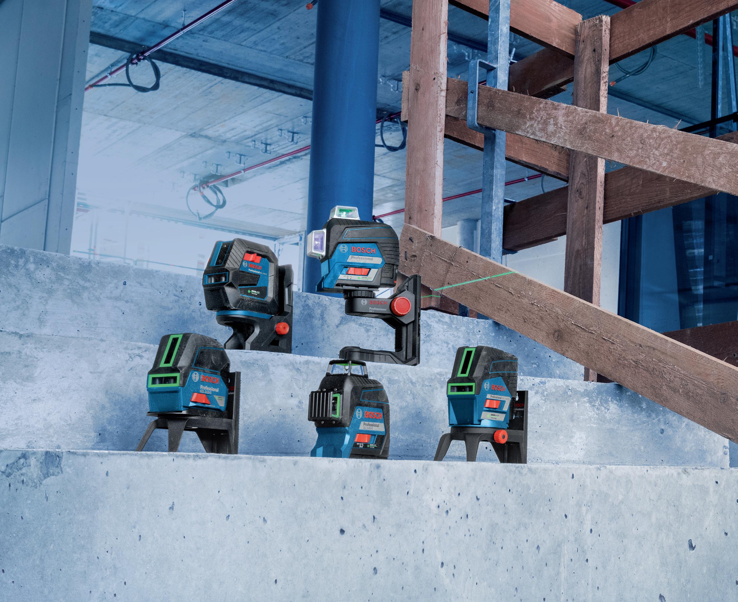 Mótorknúinn alhliða haldari til að stilla laserinn. Mismunandi festimöguleikar fyrir verkfærið. Hægt að nota með snjallsíma í gegnum Bluetooth® eða RC 2 Professional fjarstýringu. Gengur með nýju GCL 2-50 C og GCL 2-50 CG.