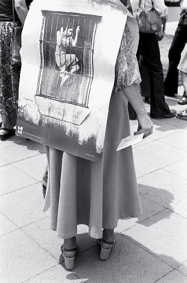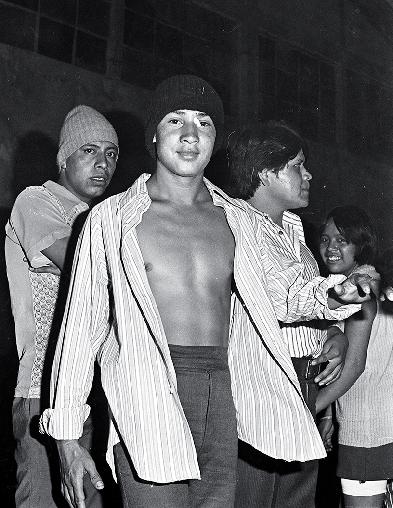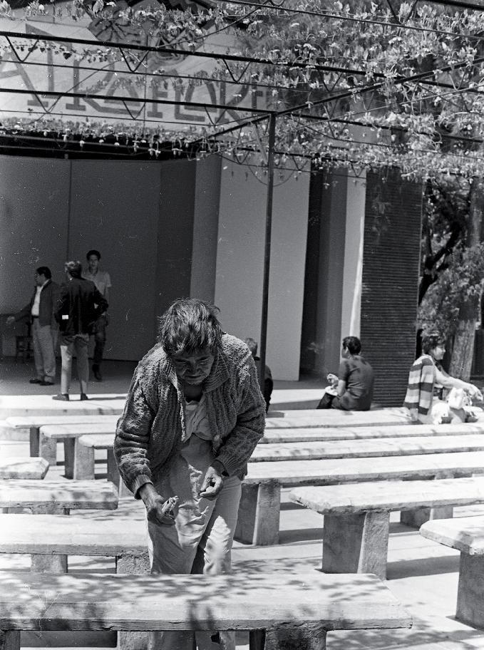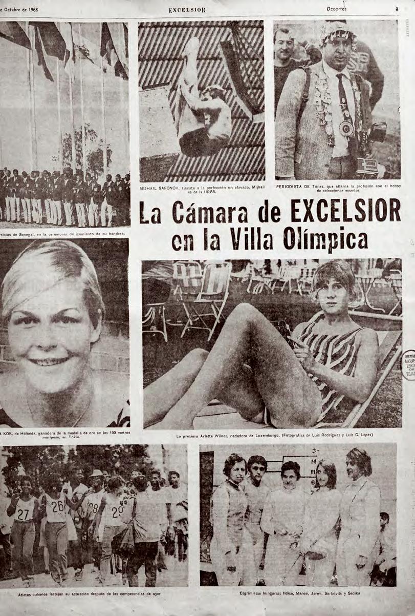Béchir Manoubi, realizando su trabajo como fotógrafo en el certamen olímpico de Alemania y siendo él mismo objeto de registros fotográficos a causa de su sombrero de charro y su ropa cubierta de prendedores, insignias y parches. Fotonota publicada en el diario Novedades, el 6 de septiembre de 1972. Archivo hemerográfico de la Biblioteca Miguel Lerdo de Tejada de la shcP.