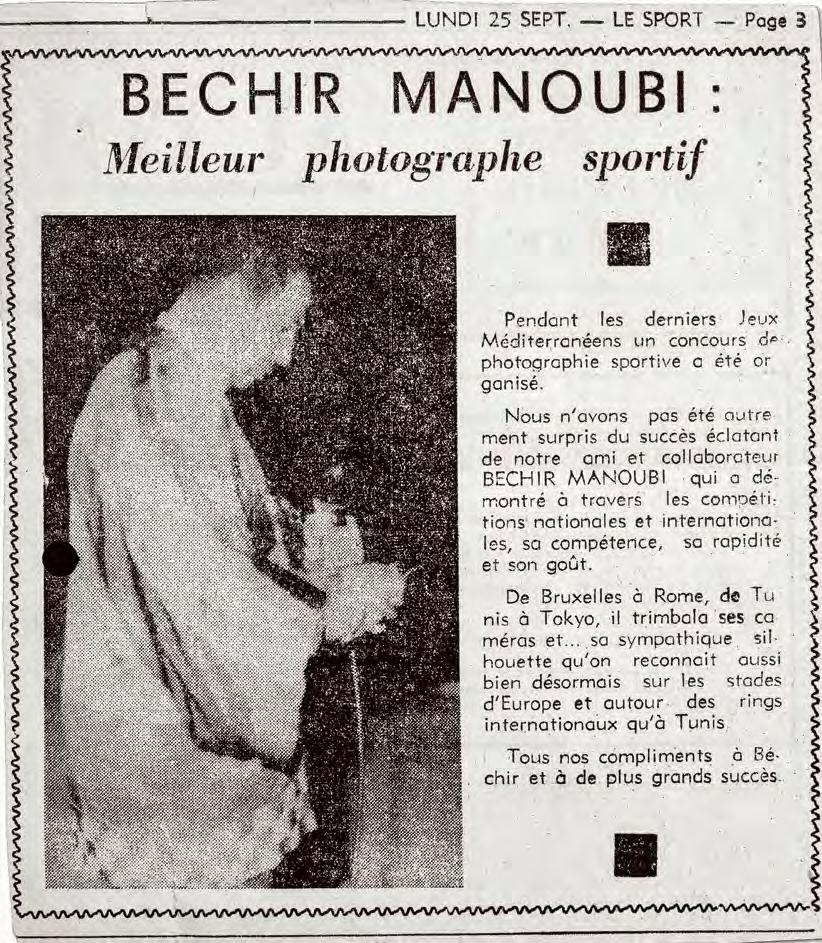 El fotógrafo Béchir Manoubi falleció el 24 de noviembre de 2005. Logró un récord mundial de participación en Juegos Olímpicos y Copas Mundiales de Futbol. Dejó a su familia y al mundo del deporte un gran legado: un archivo fotográfico con miles de negativos que dan cuenta de cincuenta y cinco años de trabajo. Se posicionó como unos de los fotógrafos deportivos más importantes y reconocidos a nivel internacional. Siguieron sus pasos como fotógrafo deportivo su hijo Hosni Manoubi y su nieto Omar Manoubi, quienes además dieron continuidad a su gusto por los suvenires.