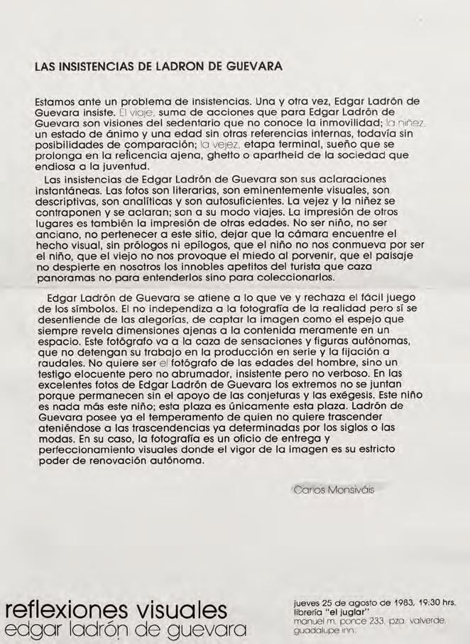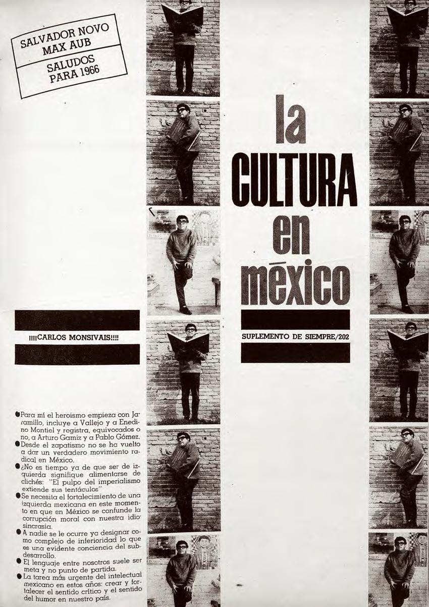 Carlos Monsiváis en entrevista realizada por Elena Poniatowska, que se publicó en el diario Novedades, en cuatro partes, entre el 17 y el 20 de abril de 1977.