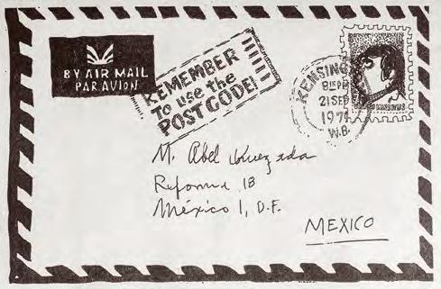 Sobre decorado con un montaje fotográfico en el que Béchir Manoubi remitió su carta de presentación al Comité a cargo de las Olimpiadas en México. Archivo General de la Nación. Fondo Comité Organizador de los xix Juegos Olímpicos.