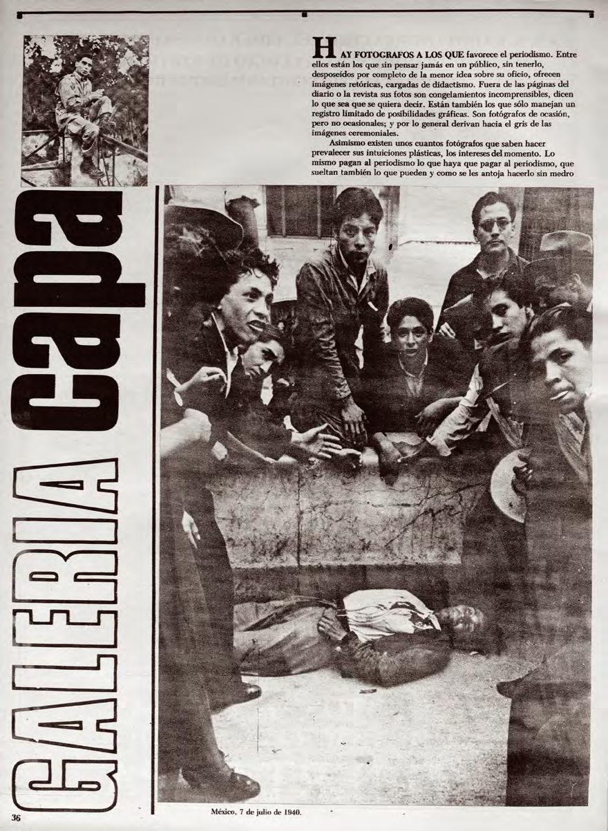 El conjunto de revistas ilustradas que Carlos Monsiváis recopiló a lo largo de su vida, en su doble condición de lector y coleccionista, ofrece un amplio panorama del uso que en México se le dio, en el transcurso del siglo xx, a la fotografía como recurso narrativo. En ese legado hemerográfico, memoria documental en que se entreveran relatos, registros y representaciones de la más diversa especie, se puede dar seguimiento al desarrollo local del reportaje gráfico, desde que se abrió camino en las páginas de El Mundo Ilustrado, Cómico, Cosmos o La Semana Ilustrada, hasta que se volvió componente imprescindible en Revista de Revistas, Jueves de Excélsior, Hoy, Vea o Magazine de Policía, por mencionar unos contados títulos. Esa compilación de impresos nos deja ver asimismo la enorme variedad de combinaciones y ensamblajes de imagen fotográfica, texto, dibujo, gráfica y tipografía que se realizaron en nuestro país, en ese mismo periodo, con los propósitos de hacer más atractivo el diseño de portadas e interiores, complementar a la información escrita, dar mayor impacto a los anuncios comerciales, conformar relatos legibles aun para los iletrados y servir como entretenimiento visual en un sinfín de modalidades y tratamientos.