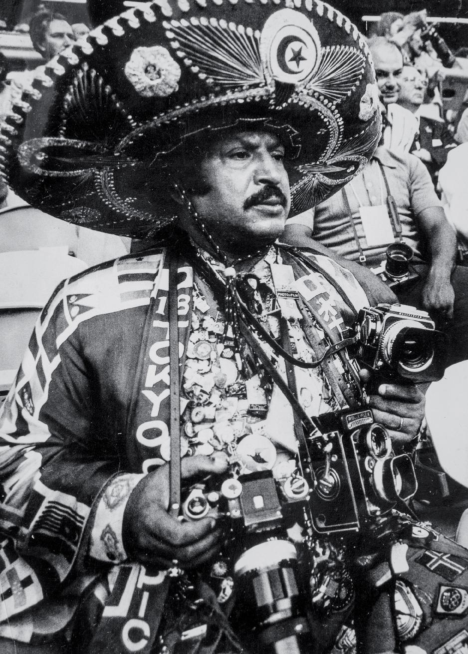 Todo indica que Béchir Manoubi comenzó a usar el sombrero de charro en los Juegos Olímpicos de Múnich en 1972 y desde entonces, en distintos eventos internacionales, fue parte de su vestimenta, la cual inevitablemente causaba asombro entre sus colegas y el público en general. El fotógrafo tunecino, cada vez más cargado de pines y escudos, solía convertirse en noticia en la información gráfica surgida de esas justas deportivas.