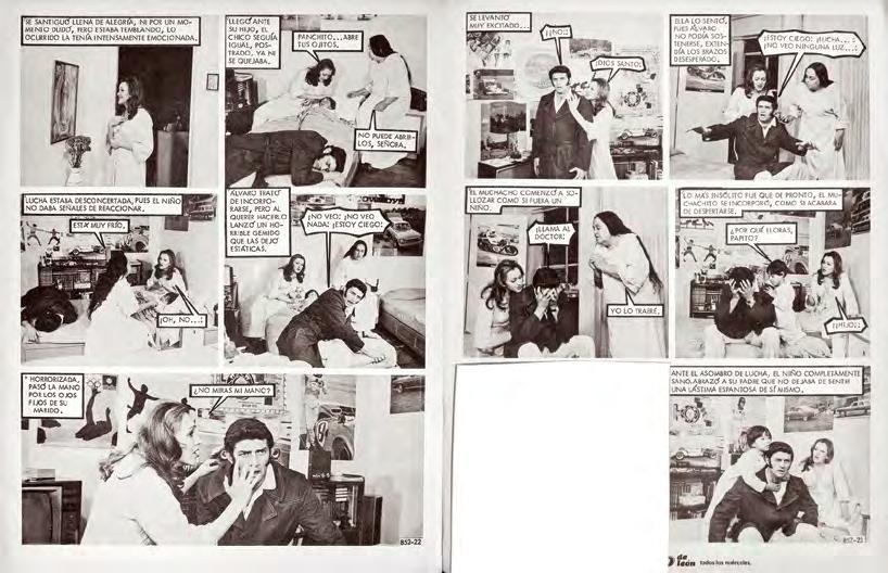Páginas de la fotonovela Novelas de amor (núm. 852, del 6 de diciembre de 1976) de donde Carlos Monsiváis tomó la viñeta que hizo víctima de su saña humorística y luego publicó en la sección Por mi madre, bohemios del número 777 de La Cultura en México, del 5 de enero de 1977. Fondo hemerográfico y documental de Carlos Monsiváis | Biblioteca de México José Vasconcelos. Archivo de la Galería López Quiroga.