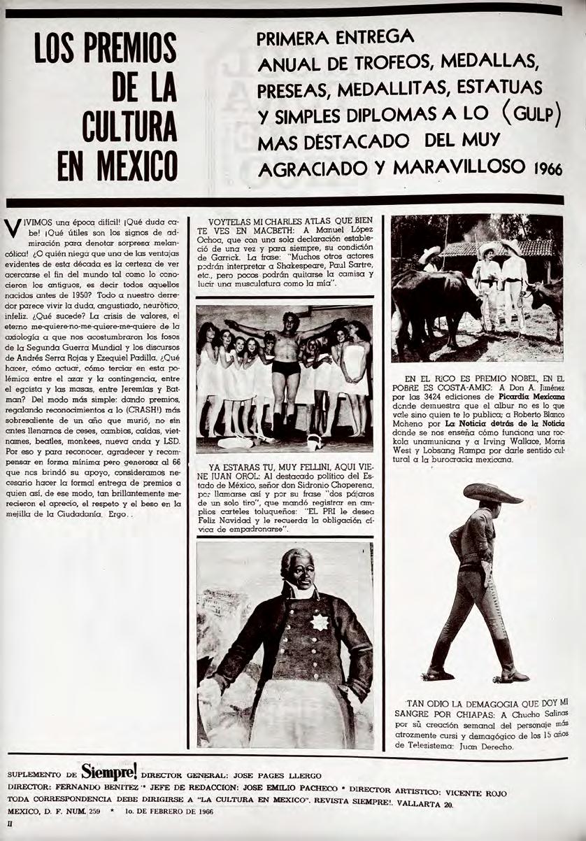 8 12 16 22 24 40 44 48 62 74 78 88 98 118 124 144 148 156 158 162 164 178 182 206 224 Presentación La risa de la Coatlicue La historia-ficción del cine mexicano Las conferencias-espectáculo La mayoría de edad de la Nueva grandeza mexicana Un saludo a la afición y a mi mamacita que me está viendo Perdurabilidad del cómic Anáhuac en el cosmos El quiosco de MonsiMad El pop art, lenguaje de los sesentas