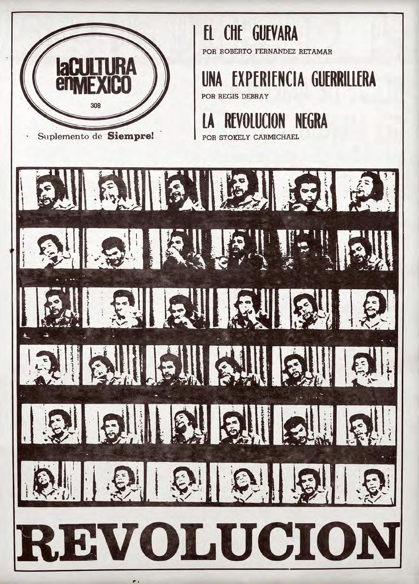 Secuencia de la fotohistorieta “Lo que La Mafia se llevó” basada en fotografías de Héctor García y con textos acreditados a Walt Disney. La protagonizaron, entre otros intelectuales y artistas, María Luisa Mendoza, Carlos Fuentes, José Luis Cuevas y Gabriel García Márquez. Se publicó en el número 189 de La Cultura en México, del 29 septiembre de 1965. Archivo hemerográfico de la revista Siempre!