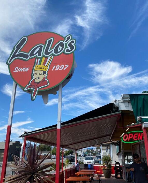 To-die-for tacos at Lalo’s, and the cheerful exterior at Lalo’s.