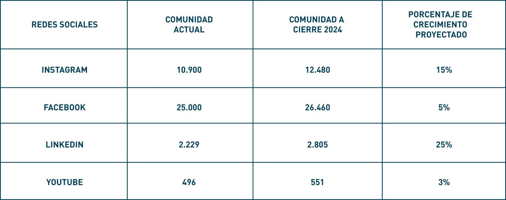 Esta proyección se realizó con los datos obtenidos de crecimiento mensual de cada red social.
