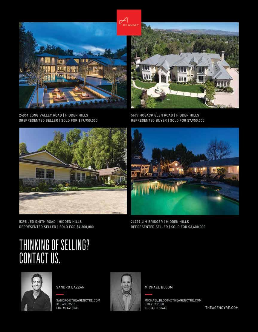 jordancohen.com • jordan@jordancohen.com @jordancohen1 DRE#01103362 Guard Gated Hidden Hills $21,300,000 PremierHHEstate.com Guard Gated Hidden Hills $7,995,000 25225EldoradoMeadow.com The Estates of the Oaks $9,995,000 PremierOaksEstate.com Guard Gated Westlake Island $4,699,000 2456Oakshore.com Direct Office: 818.435.5220 Over $300,000,000 in Annual Sales