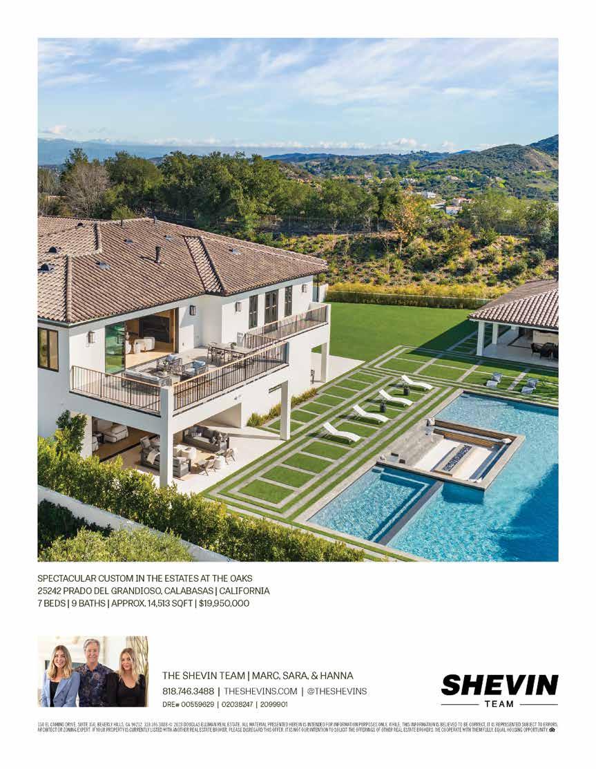 178 Calabasas style SPECTACULAR SINGLE STORY VIEW ESTATE 24810 JACOB HAMBLIN, HIDDEN HILLS | CALIFORNIA 5 BEDS | 8 BATHS | APPROX. 6,890 SQFT | $11,950,000 150 EL CAMINO DRIVE, SUITE 150, BEVERLY HILLS, CA 90212. 310.595.3888 © 2023 DOUGLAS ELLIMAN REAL ESTATE. ALL MATERIAL PRESENTED HEREIN IS INTENDED FOR INFORMATION PURPOSES ONLY. WHILE, THIS INFORMATION IS BELIEVED TO BE CORRECT, IT IS REPRESENTED SUBJECT TO ERRORS, OMISSIONS, CHANGES OR WITHDRAWAL WITHOUT NOTICE. ALL PROPERTY INFORMATION, INCLUDING, BUT NOT LIMITED TO SQUARE FOOTAGE, ROOM COUNT, NUMBER OF BEDROOMS AND THE SCHOOL DISTRICT IN PROPERTY LISTINGS SHOULD BE VERIFIED BY YOUR OWN ATTORNEY, ARCHITECT OR ZONING EXPERT. IF YOUR PROPERTY IS CURRENTLY LISTED WITH ANOTHER REAL ESTATE BROKER, PLEASE DISREGARD THIS OFFER. IT IS NOT OUR INTENTION TO SOLICIT THE OFFERINGS OF OTHER REAL ESTATE BROKERS. WE COOPERATE WITH THEM FULLY. EQUAL HOUSING OPPORTUNITY. THE SHEVIN TEAM MARC, SARA, & HANNA 818.746.3488 | THESHEVINS.COM | @THESHEVINS DRE# 00559629 | 02038247 | 2099901 ELLIMAN.COM