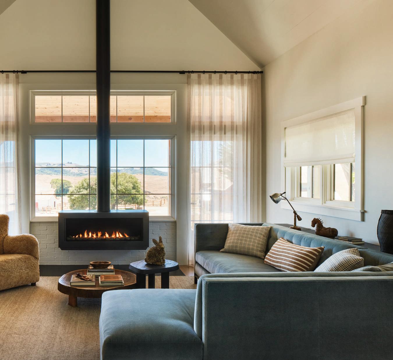 RIGHT Marin-based Holder Parlette, a firm specializing in architecture, landscapes, and interiors, designed this home, on a remote site on a Sonoma ridge, that expressed the natural blend of the land. The architects framed the view by creating a long central corridor that leads to an expansive great room. See story beginning on page 84. Photography by Adam Potts.