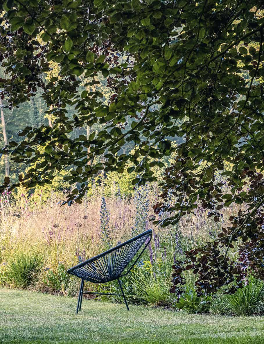 In den vierzig Jahren, in denen ich das Privileg habe, Gärten und Landschaften zu gestalten, bin ich immer vom Bestand ausgegangen und habe ausnahmslos natürliche Materialien und Pflanzen verwendet. Ungiftig, umweltfreundlich, regional und so weit wie möglich heimisch. Bei meinen Entwürfen versuche ich, natürliche Elemente unter biophilen Gesichtspunkten zu verwenden. Vor der eigentlichen Gestaltung setze ich mich in den Garten und versuche, mit der Umgebung in Kontakt zu treten. So kann ich feststellen, wie sich der Garten anfühlt, z. B. in Bezug auf Sonne und Wind, Wolkenlandschaften, einen starken Regenschauer oder den Sternenhimmel. Die meisten meiner Entwürfe haben einen organischen Charakter und sind von der Natur inspiriert, in der nahezu alles organisch geformt ist. Die Natur hat bereits alle Formen geschaffen und ist uns dabei zuvorgekommen. Die Natur hat oft die beste Lösung parat. Auch wenn ich möchte, dass sich unsere Entwürfe in die umgebende Natur und das Ökosystem ganz selbstverständlich einfügen, verwende ich Bäume und Pflanzen aus Baumschulen und Gärtnereien.