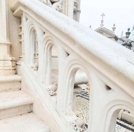 Foi feito um trabalho importante de consolidação superficial dos calcários mais frágeis e em desagregação sobretudo na escadaria, utilizando um produto especifico (TEGOVAKON da BIU) que vai permitir estabilizar o fenómeno da erosão
