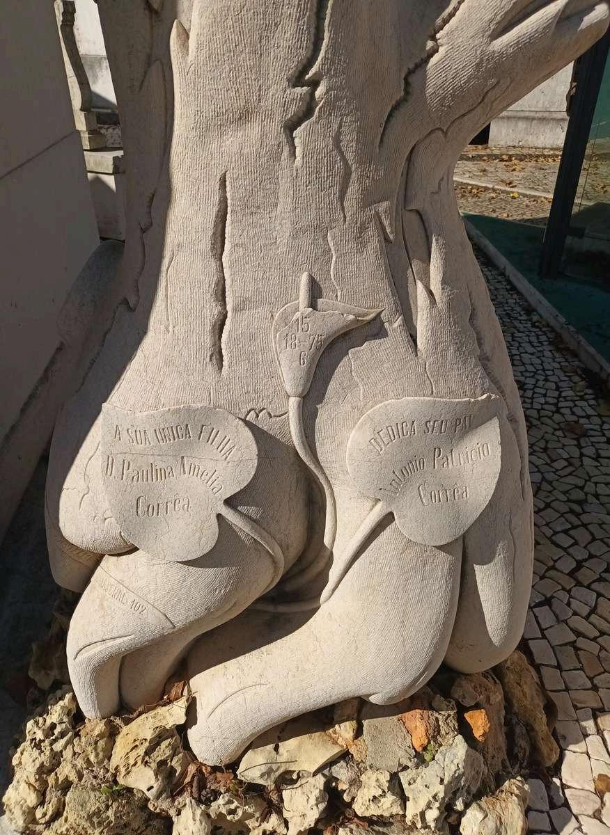 Nos cemitérios de Lisboa, temos várias esculturas de árvores truncadas ou quebradas que estão normalmente a adornar jazigos onde repousam jovens ou crianças, simbolizando assim uma interrupção na genealogia familiar, a morte de alguém que parte antes do seu tempo, antes de envelhecer, logo, antes do tempo natural para abandonar este mundo.