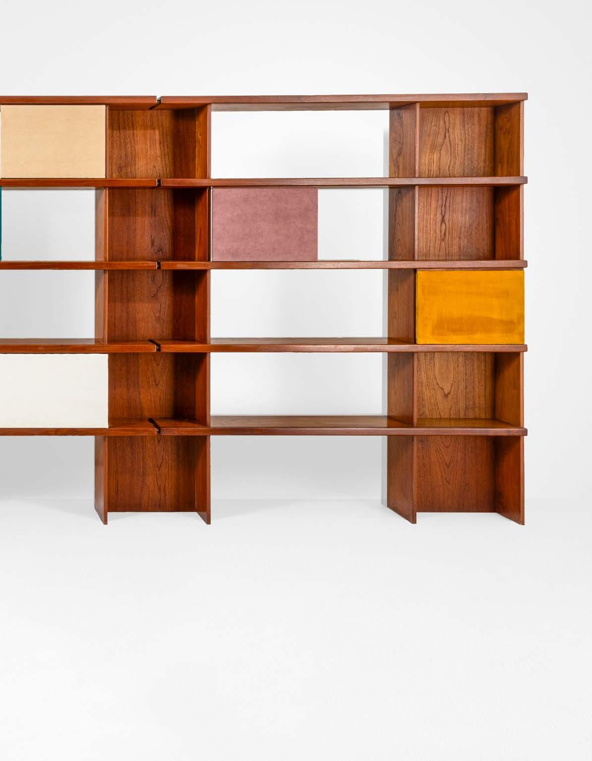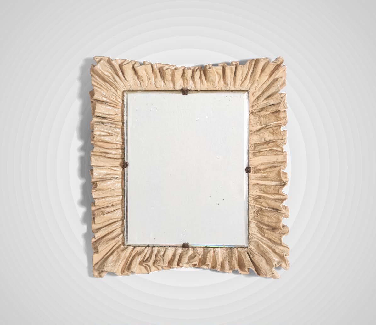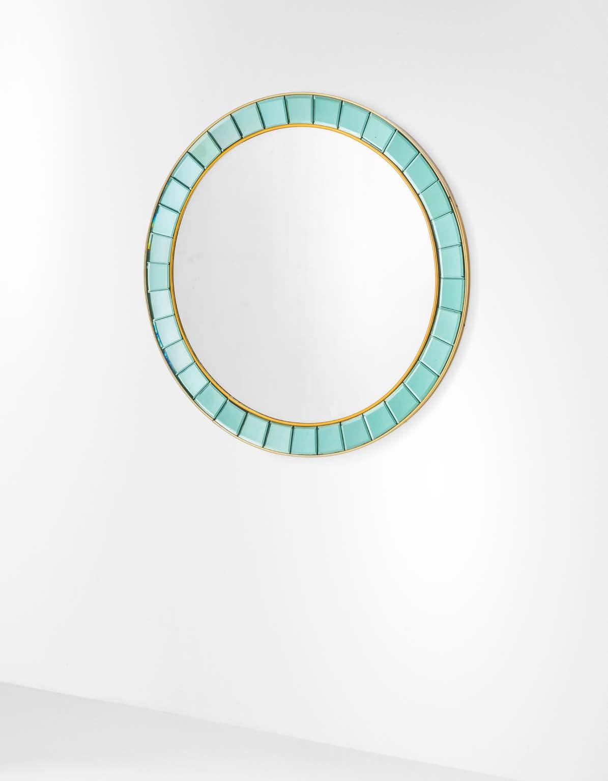Struttura in legno, metallo laccato, ottone e cristallo specchiato.