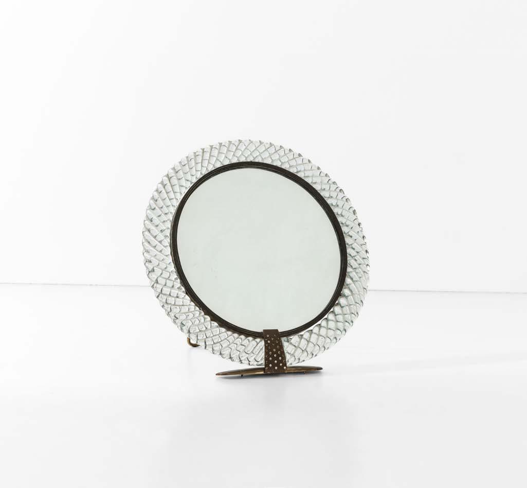 Struttura e supporto in ottone e cornice in vetro di Murano a treccia.