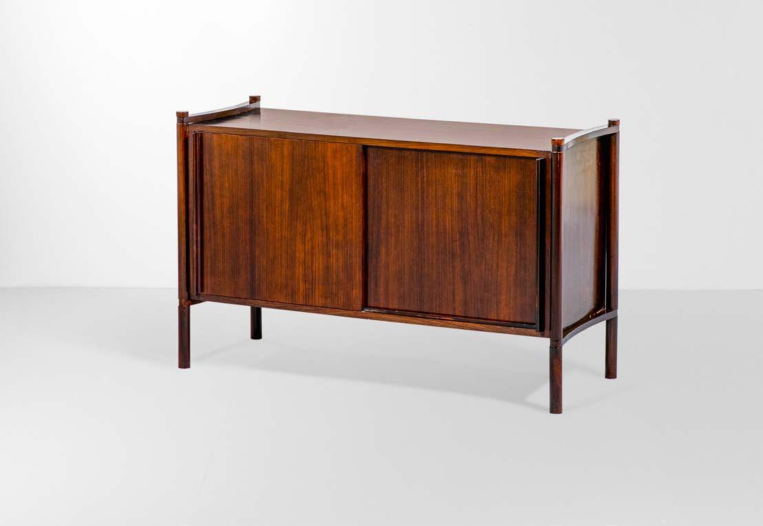 Struttura in legno, base e maniglie in legno ebanizzato.