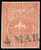 All the material is guaranteed authentic and without hidden faults by the consignor unless otherwise indicated in the description of the catalog. The images of all the individual lots are reproduced in the catalog or on the website; these images are an integral part of the description, especially in terms of edges, perforation, centering and cancellation. The descriptions of the individual lots are drawn up with the utmost care. In any case, the lots are sold under the “as is” clause, except for obvious errors or in the presence of forgery that have escaped our control. Public pre-auction viewing will allow potential buyers to inspect the lots in person or through their own trusted agents in order to verify their authenticity, preservation, provenance, quality and any defects.