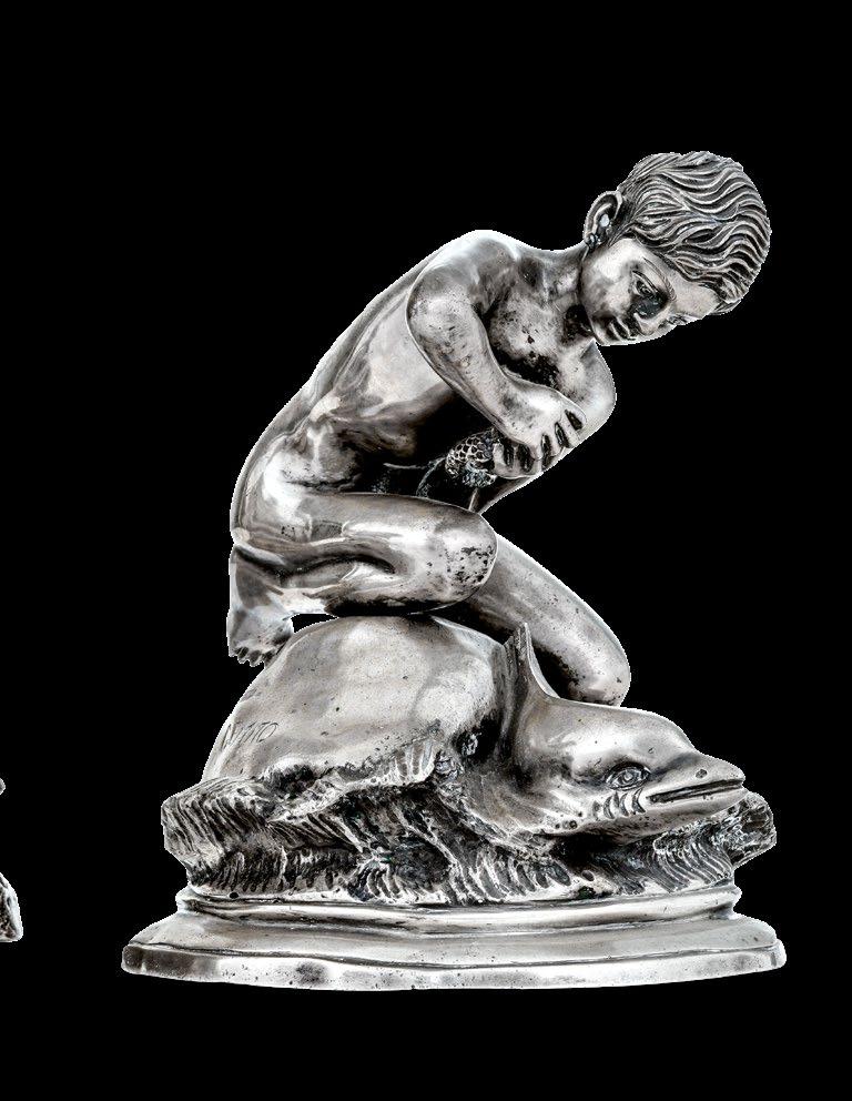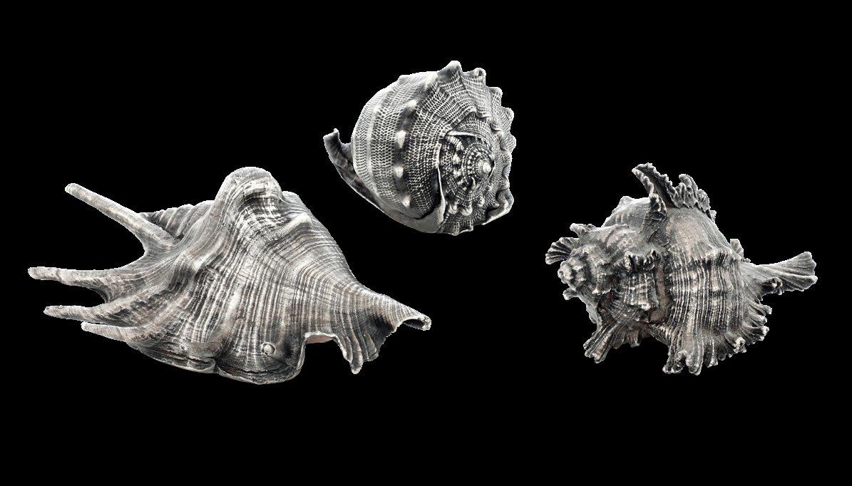 Centrotavola a tema marino con tritoni e conghiglie e base modanata in marmo
