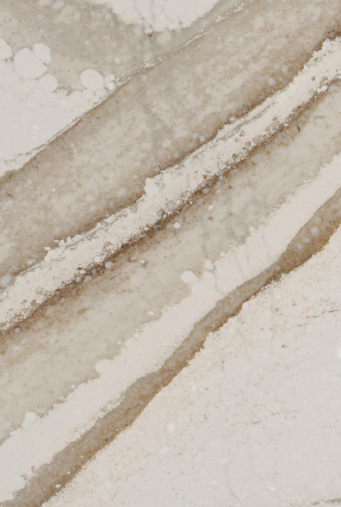 BOLD BACKDROPS. Bring intrigue and energy to full-height backsplashes with the sweeping veins of Brittanicca Warm™.