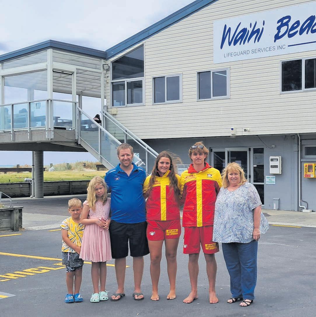 SamandKateCochrane(JuniorSurfathletes).AndrewCochrane(DirectorofAssetsandSearchandRescueCo-ordinator), ChiaraWoodford(SeniorLifeguard)andJakeArmstrong(SeniorLifeguard)withDonnaPfefferle(ClubChair)