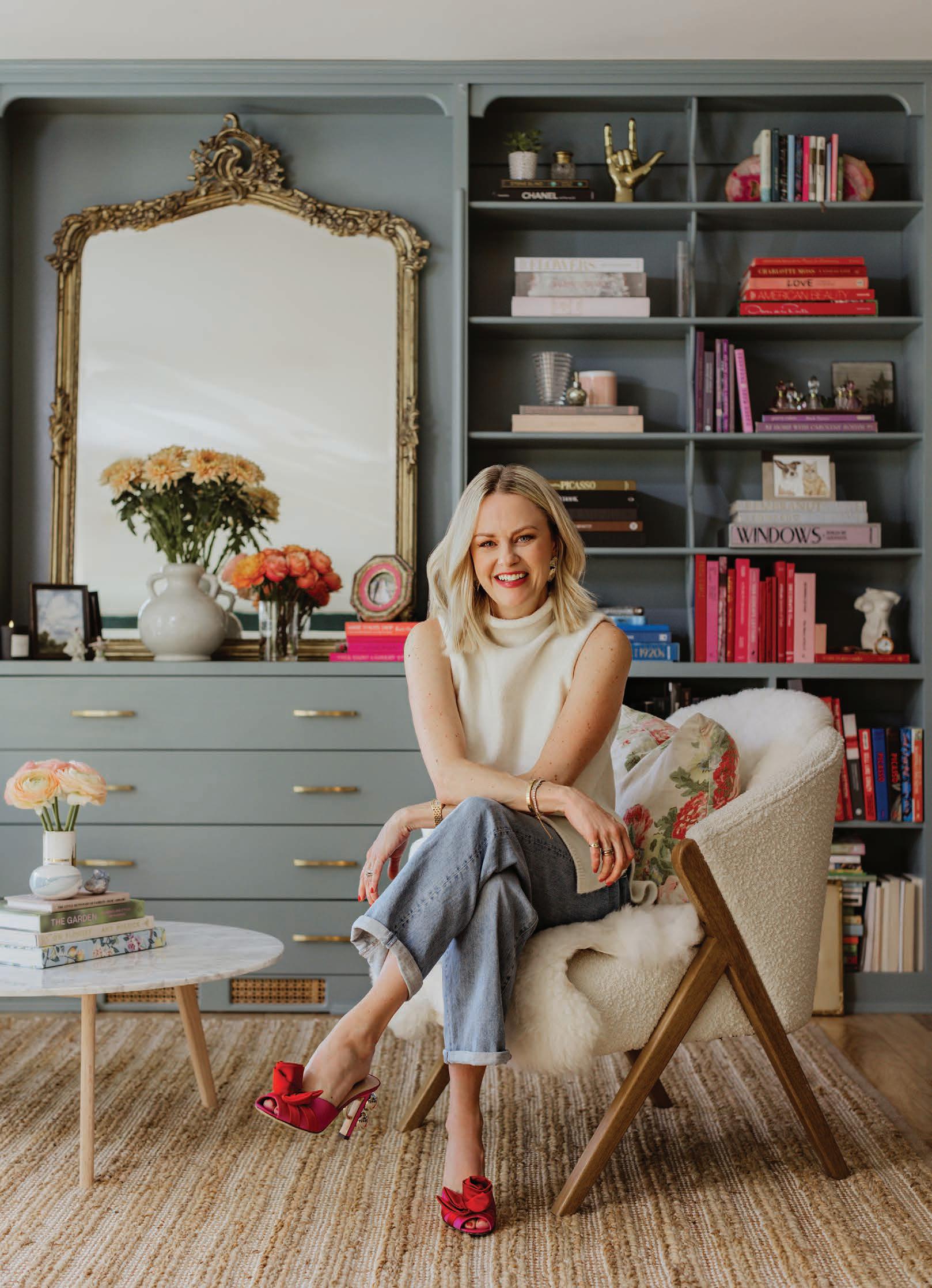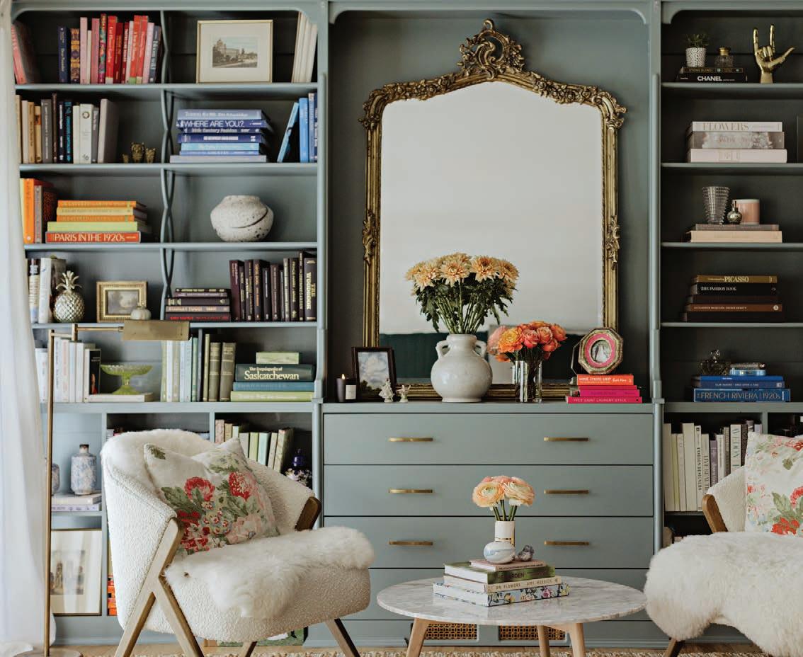 Vintage treasures and gorgeous photo books line the walls of Rebecca Rawlinson’s home library.