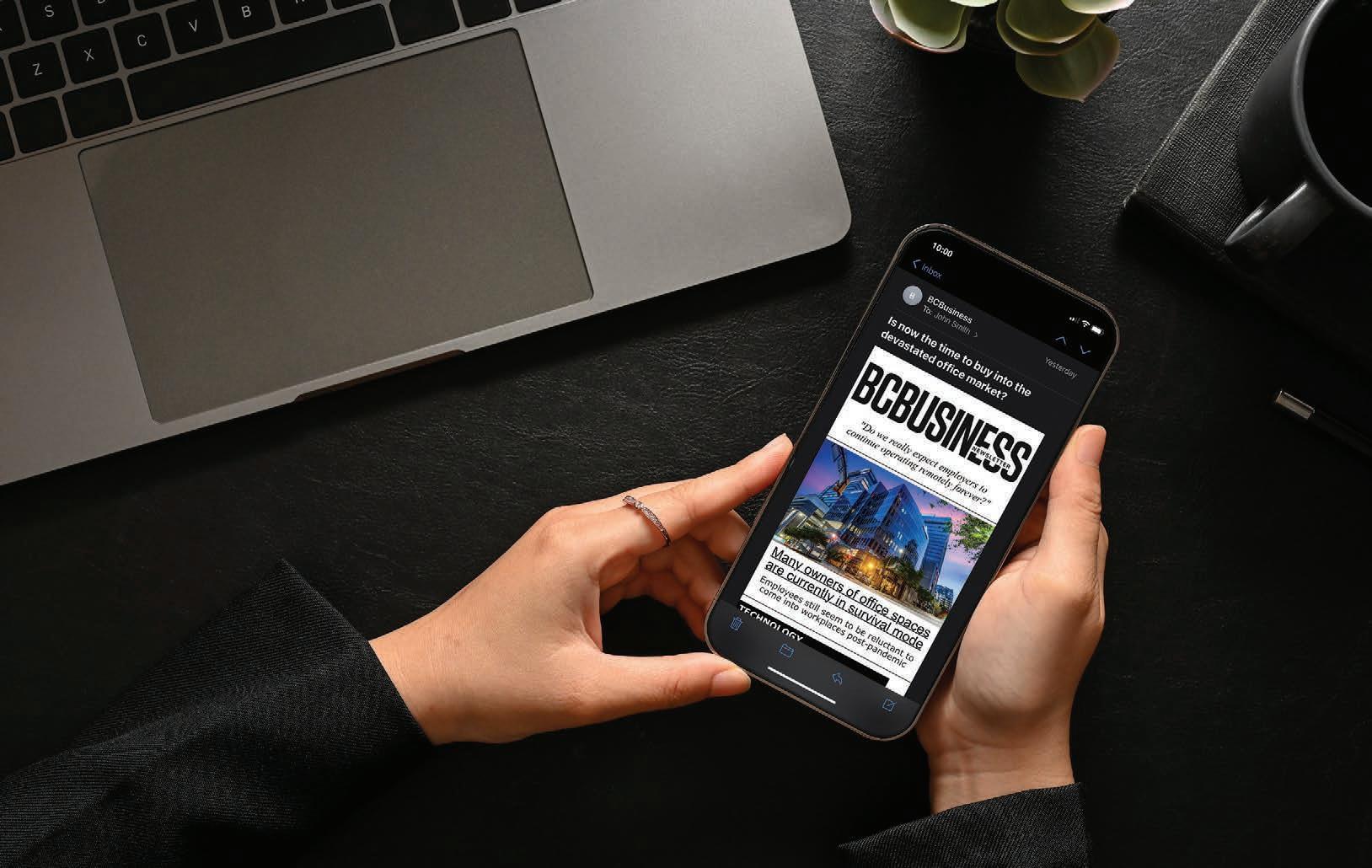 GET UP-TO-DATE BUSINESS NEWS DIRECTLY TO YOUR INBOX bcbusiness.ca | @BCBusiness INCLUDES …and much more INSIGHTS In-depth features on key industries ADVICE Tips for working smarter and better PEOPLE Engaging interviews with business leaders