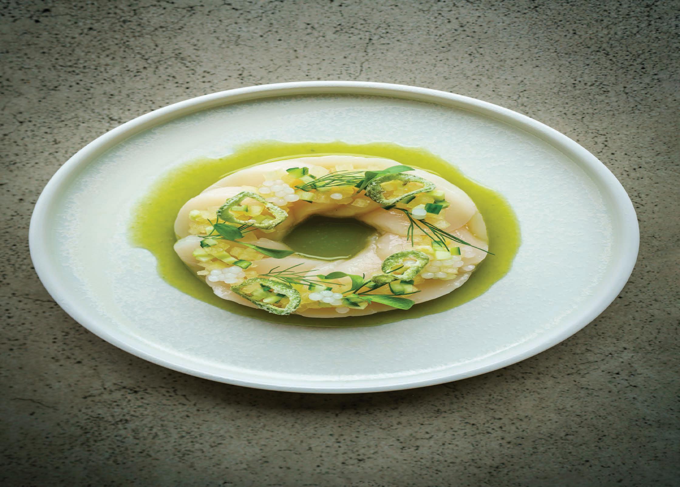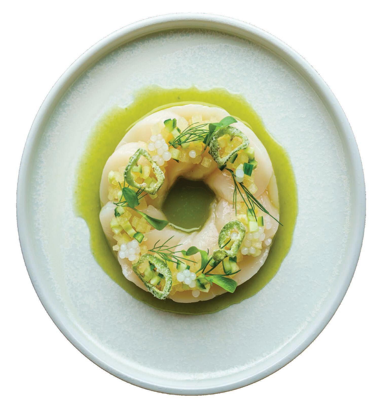 Majestic Mollusks Hokkaido scallops with apple, cucumber and crispy jalapeño ($27) from Bravo, one of Vancouver's newest (and buzziest) spots for seafood. Read more on page 58.