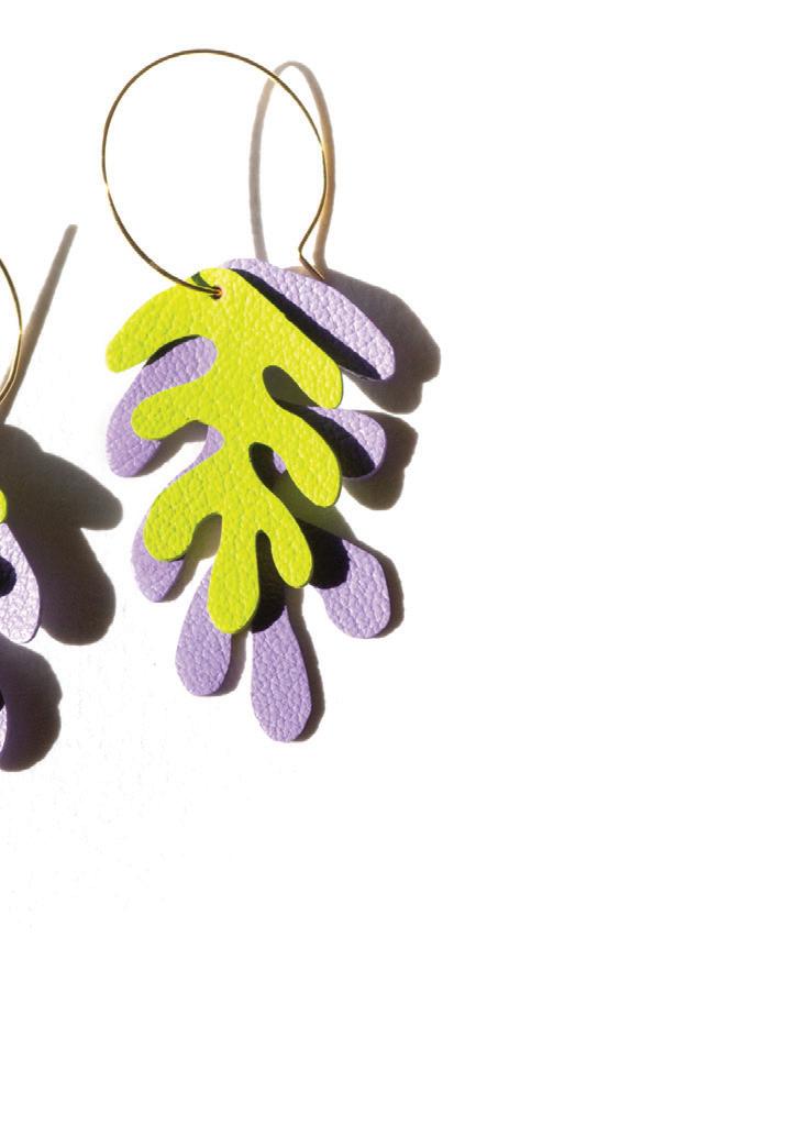For statement earrings that your lobes will love: Scandinazn’s reclaimed leather ware is light and bright.