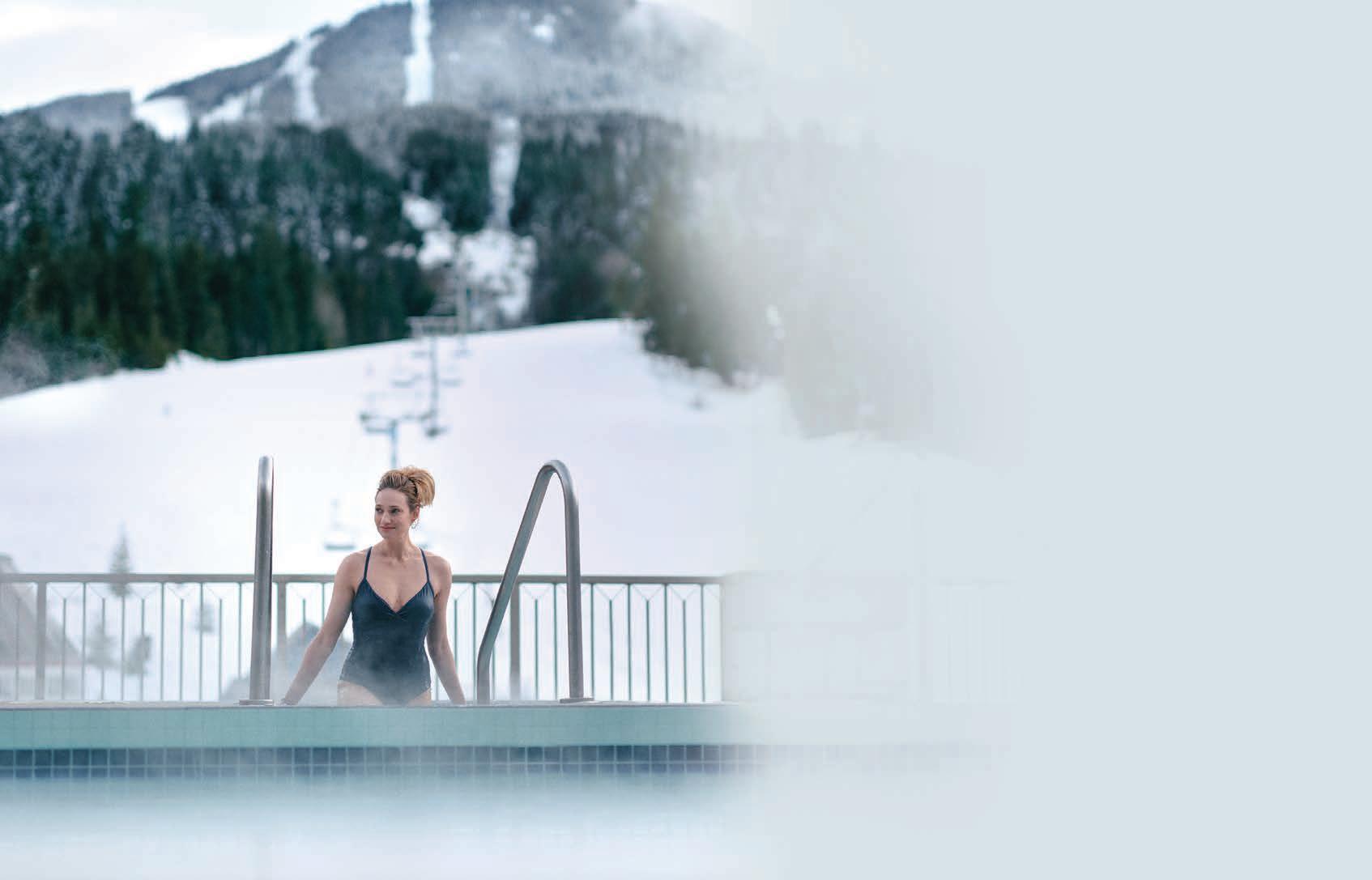 The best way to ward off a postfondue coma? By taking another kind of dip. If you’re a cold plunge die-hard, you can easily go from hot to cold in the 3,000-squarefoot spa here at Wedge Mountain. Challenge accepted. I move from the sauna to the ice-cold pool, Wim Hof-ing my heart out under the stars.