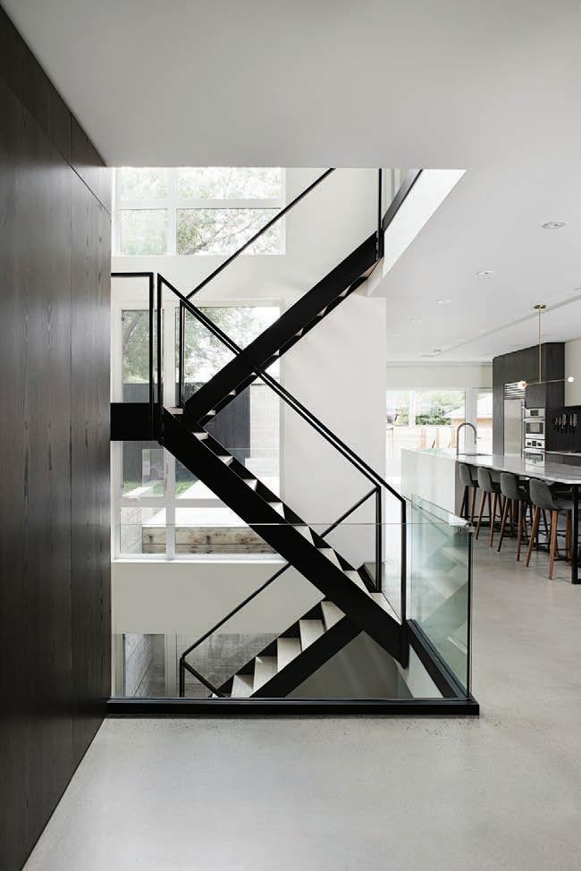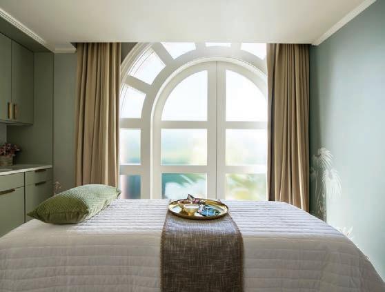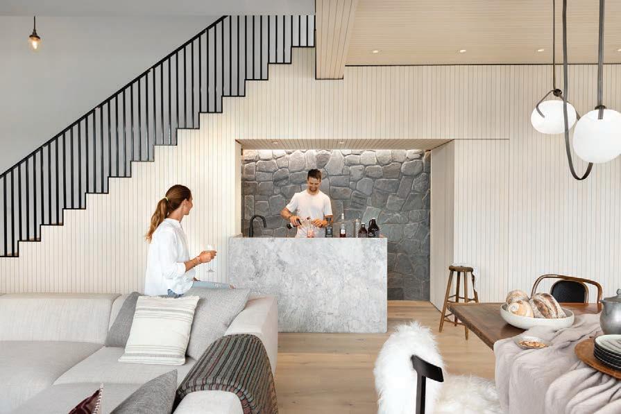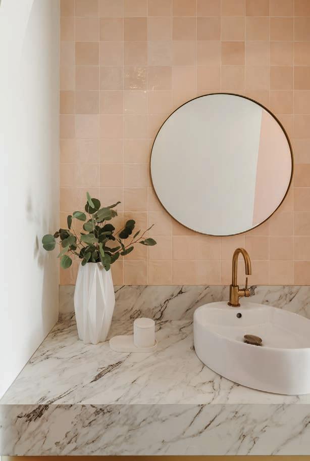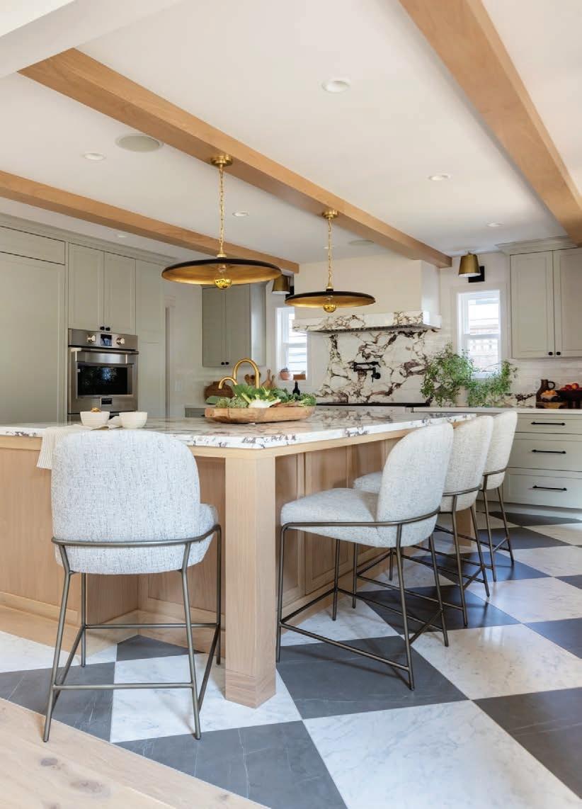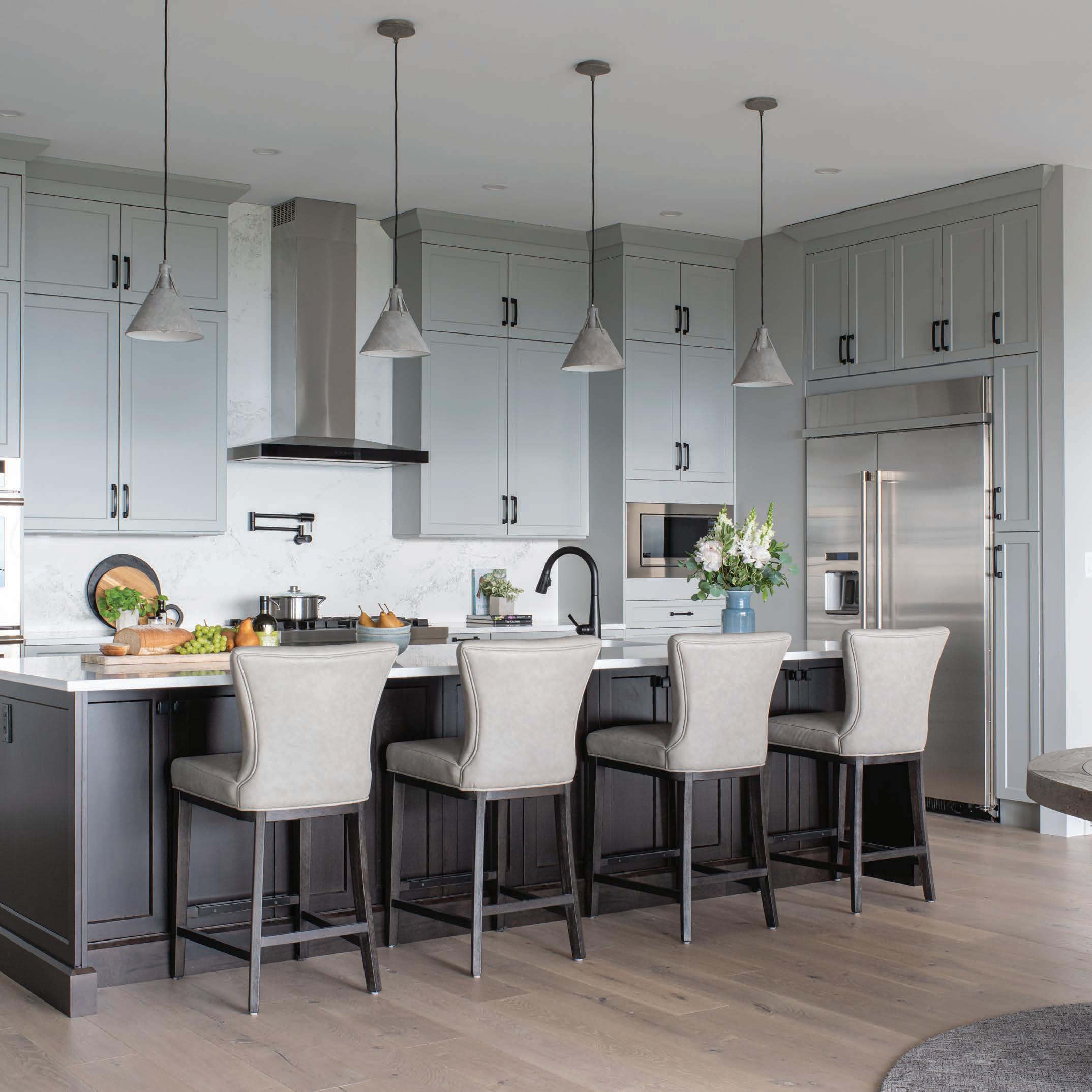 When your kitchen is the most hightraffic area of your home, you’re going to get a few rush-hour jams now and then. But rather than endure the chaos, one busy Saskatchewan family reached out to Kelsey Grose of Farmer’s Daughter Interiors to help redirect the morning traffic and bring some calm back to breakfast. With the addition of this soothing prep kitchen—all warm wood details paired with Benjamin Moore’s Carolina Gull green—the teens now have their own space to make smoothies or pull together the day’s lunch on the clean quartz counters while staying visually connected to the rest of the fam through the charming arched doorway.