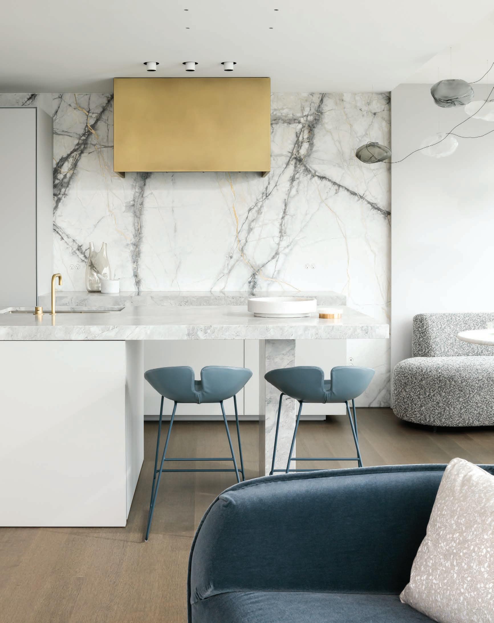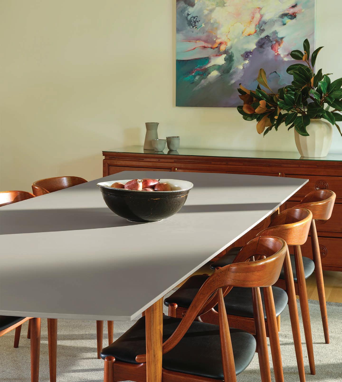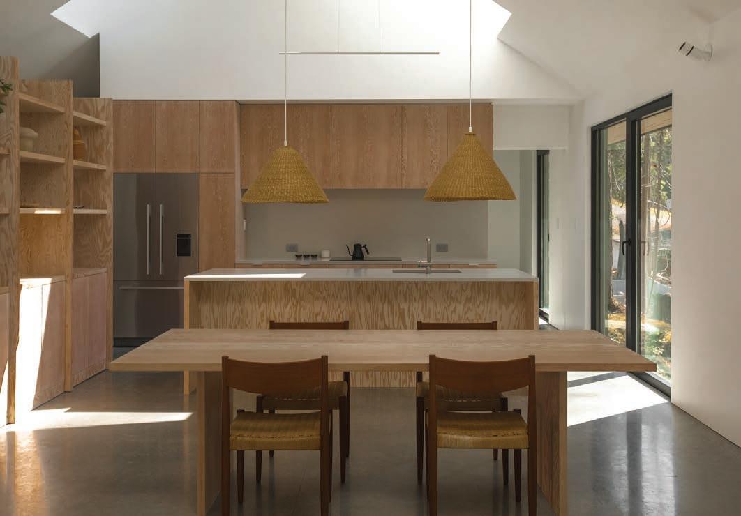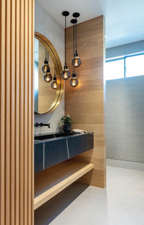 When your kitchen is the most hightraffic area of your home, you’re going to get a few rush-hour jams now and then. But rather than endure the chaos, one busy Saskatchewan family reached out to Kelsey Grose of Farmer’s Daughter Interiors to help redirect the morning traffic and bring some calm back to breakfast. With the addition of this soothing prep kitchen—all warm wood details paired with Benjamin Moore’s Carolina Gull green—the teens now have their own space to make smoothies or pull together the day’s lunch on the clean quartz counters while staying visually connected to the rest of the fam through the charming arched doorway.