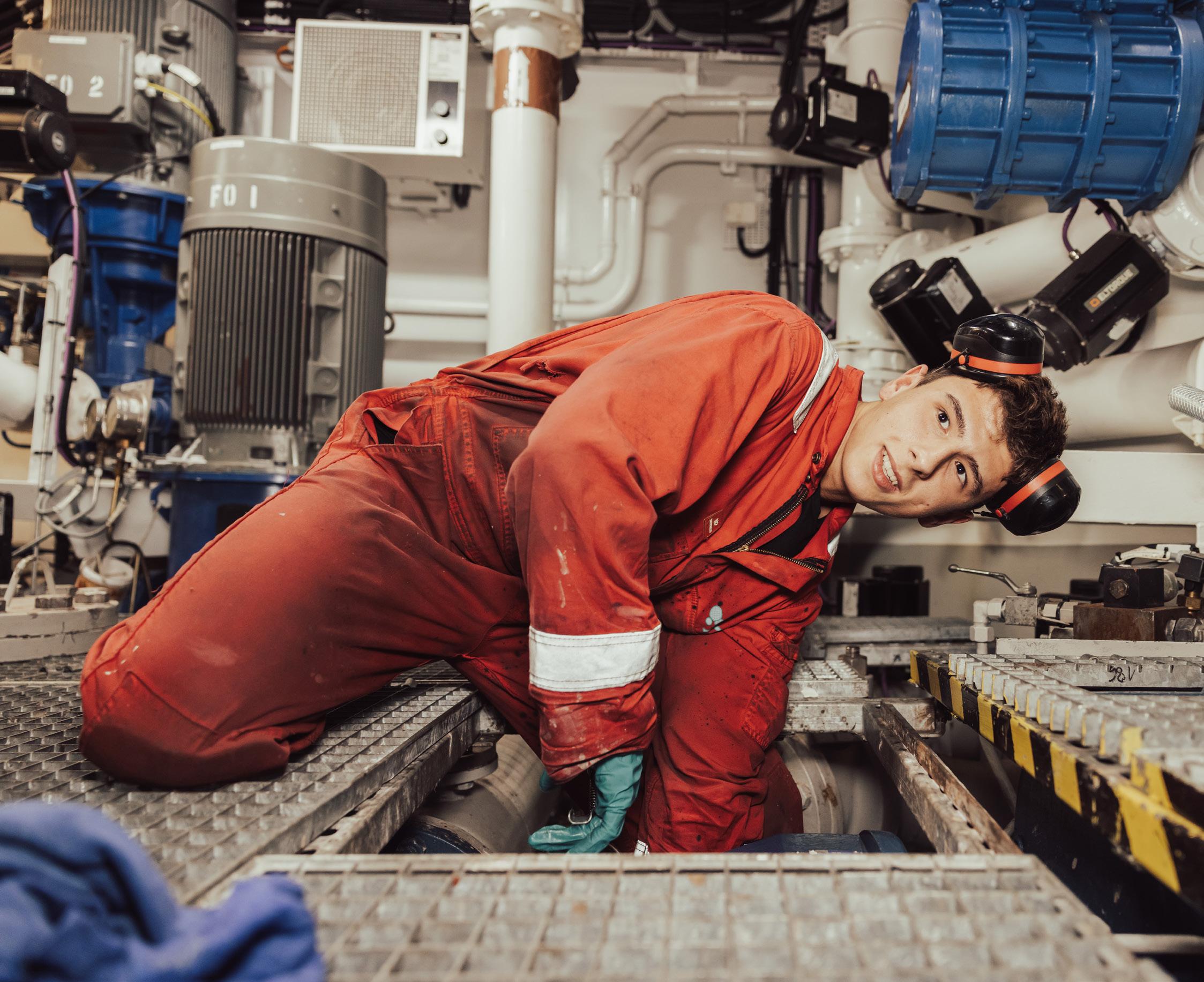 It was early morning, and the sea was calmer than it had been in a long time as the two trainees prepared for their day’s work. Eighteen-year-old Heine Elvebu Grimstad donned his overalls, safety shoes, and hard hat before heading out on deck to meet the bosun for the day’s instructions. At the same time, nineteen-year-old Adrian Skogås confidently entered the labyrinth of tanks and machinery on the ship’s lower deck. He didn’t need a helmet down there, but hearing protection was crucial.