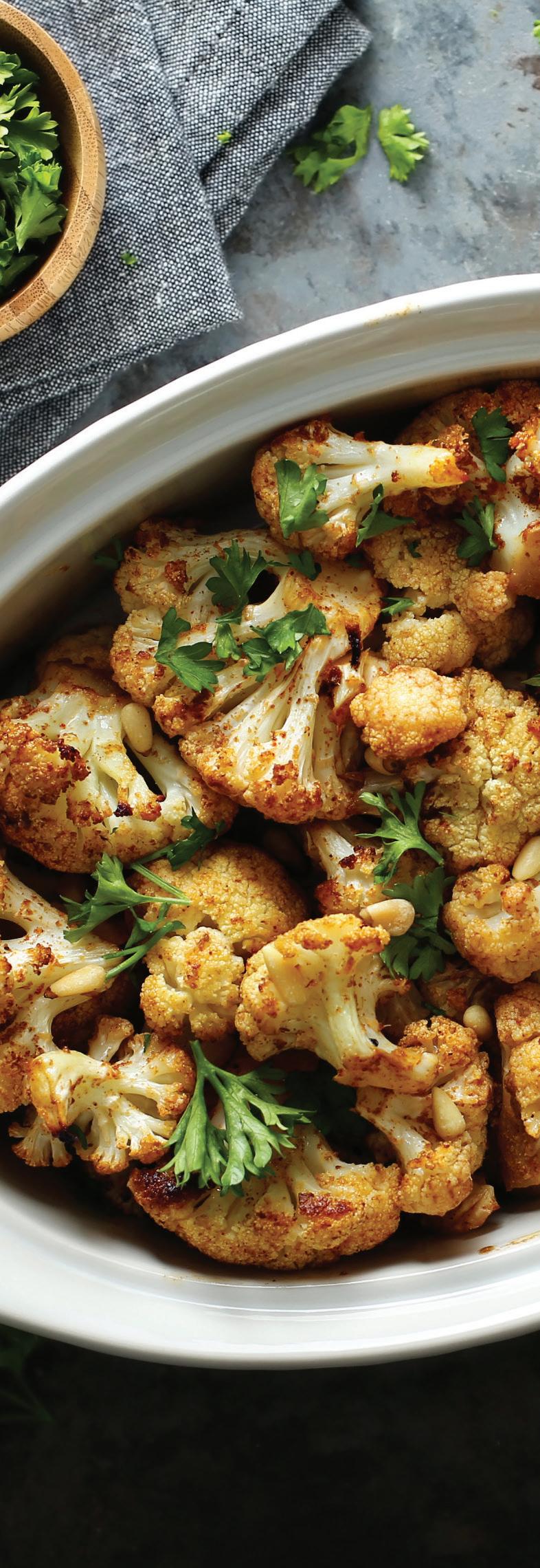 The part of the cauliflower that we eat is called the curd, and it’s made up of undeveloped flower buds. Although it can be bland when poorly cooked, the mild, nutty-tasting cauliflower is an incredibly versatile veggie and can be roasted, grilled, sautéed, or mashed, and used in everything from soups and stews to salads and stir-fries. It is also a popular low-carb substitute for rice or potatoes in many recipes.