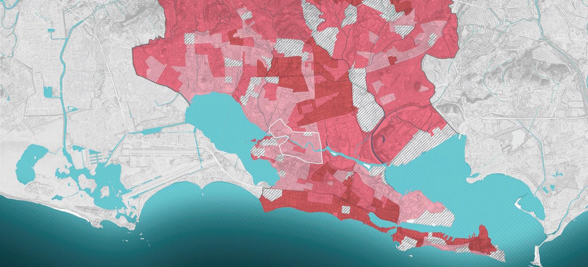 dos barrios con el mayor porcentaje de residentes que viven en la pobreza, con 68% y 63%, respectivamente.27 Además, hay proporciones significativamente más altas de personas bajo el nivel de pobreza (+ 14%) y que viven en pobreza extrema (+ 37%) en el área más grande de Caño Martín Peña que se extiende desde la Bahía de San Juan en el oeste hasta la Laguna de San José en el este. También hay niveles particularmente altos de pobreza infantil en esta área (73,5%).28