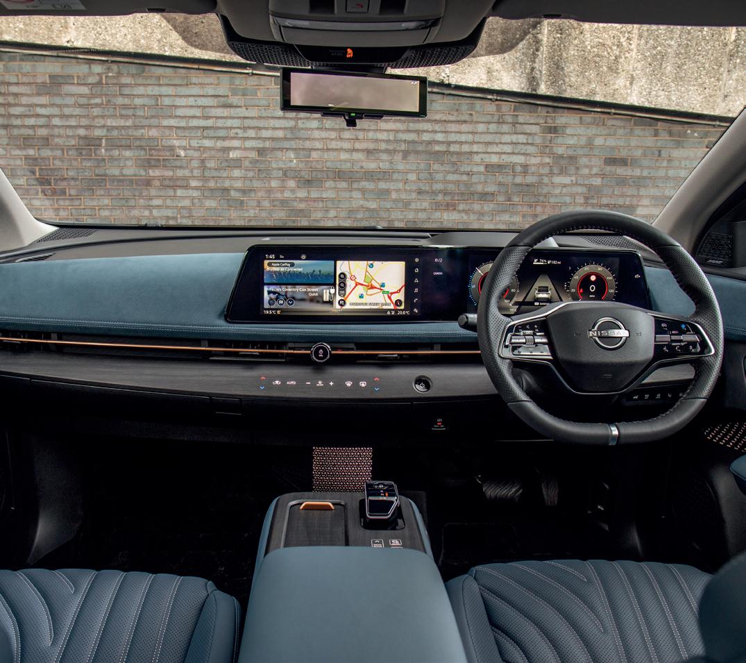 Sitting in the quirky cabin with its blue suede dashboard and paper lantern-inspired lighting, you’re aware that this is the most highquality car Nissan has built and one that offers impressive space, comfort and composure even on some pretty poor surfaces. “