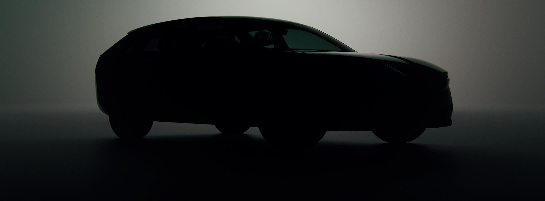The new video and image show a curved bonnet line similar to that on the Elroq and a sloping roofline down to a raked tailgate with a split roof spoiler. Slimline taillights form a narrow T shape