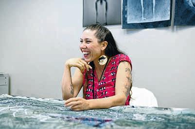 Frisbie-Calder shows amold of adog’smouth made by clinicians during treatment of the canine. The artist will