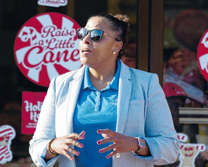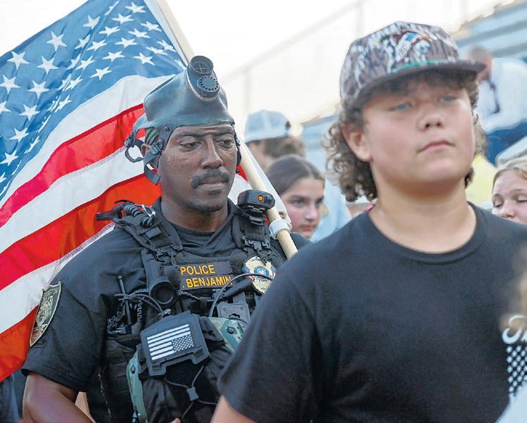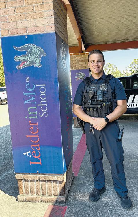 students and faculty, disrupt learning or pose a risk. Making the rounds in the cafeteria, ketchup bottle in one hand and Cane’s sauce in the other, learning what’s on the minds of middle schoolers. It’s all part of the job for School Resource Officer Joshual Simmons of the Covington Police Department, as it is for others such officers assigned to pre-K through grade 12 schools throughout St. Tammany Parish. The primary mission of these officers, commonly referred to as SROs, is to help keep children safe every school day, but other benefits also naturally result.