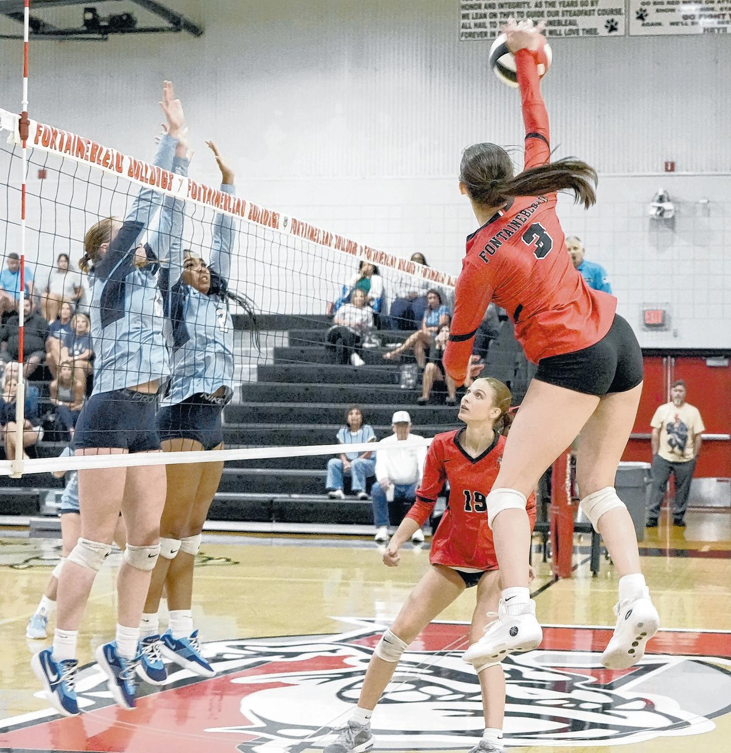 “This was a very tough loss for us,” Lange said. “Getting those two late violation calls against us really hurt our chances They beat us in the playoffs last year, so I was hoping we could get the win at home. We made too many mistakes, but we can learn from those mistakes moving forward ” Senior Ava Frerman delivered another consistent night with a team-high 26 digs to go with 12 kills. Caroline Stephens pulled up 19 digs, while Mariana Erickson added 17. Emma Hollowell added eight kills, and Brianna Mulé added 11 assists and four digs. Fontainebleau coach Kacie Mulé said it was a tough yet experience-building loss.