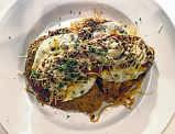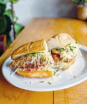 From steaks toseafood to Italian specialties, Iopted for theveal Parmesan, which did not disappoint. Twolarge, thick,lightly breaded and fried tender beef cutlets sat atop abed of capellini (a thin pastawith adiameter just slightly thicker than angel hair).Asubtly sweet house marinara covered both. Lots of melted mozzarella and agarnish of freshly chopped parsley completed thedish —aflavorful combination of classic Italian components.